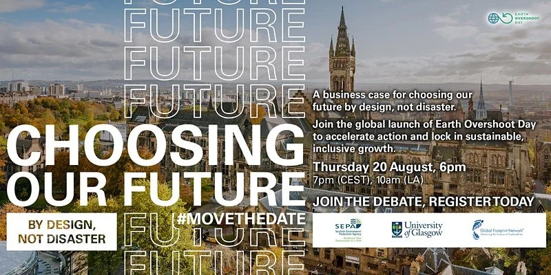 Earth Overshoot Day, dat dit jaar valt op 22 augustus, markeert jaarlijks de dag waarop we de natuurlijke grondstoffen van de Aarde hebben opgebruikt. Het Scottish Environment Protection Agency (SEPA) en Global Footprint Network lanceren de internationale campagne met een interactieve, online debatavond.